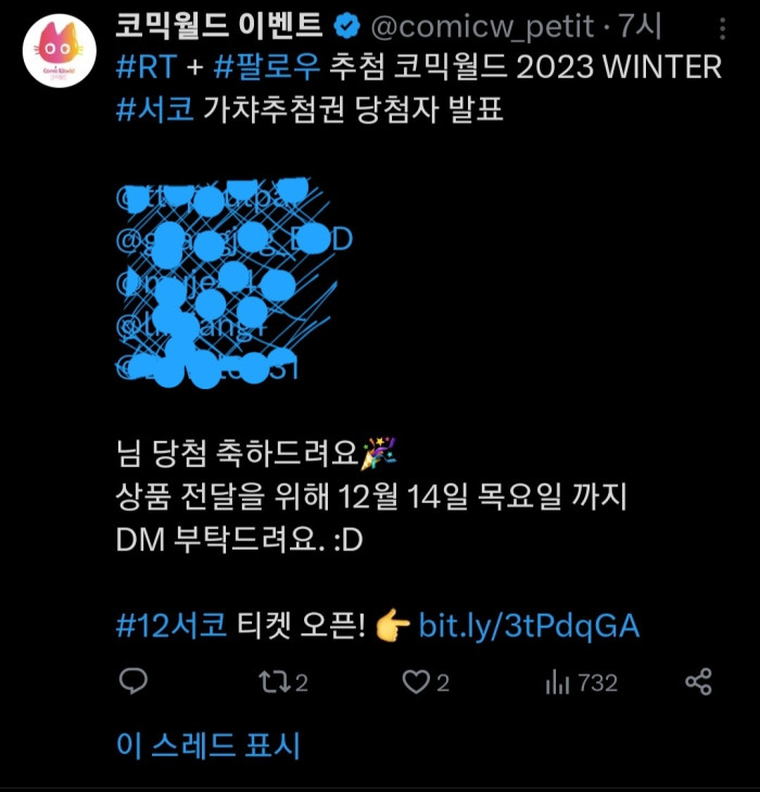 X(트위터) 가챠추첨권 당첨되었는데 DM은 어느 계정에 보내야 하나요..?