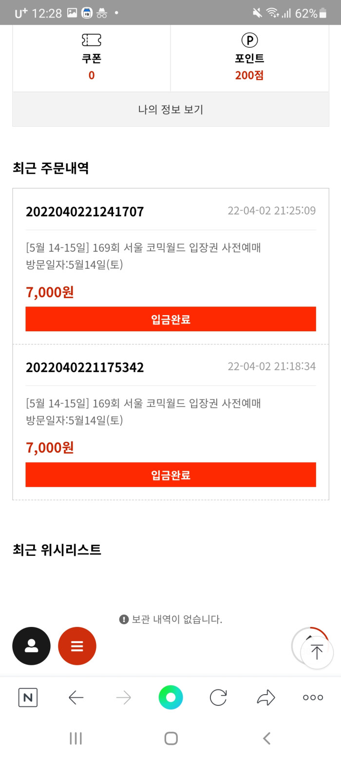 7월서코티켓 6월달에 분명사서 이메일로 결제되었다고 까지왔는데 더쿠샵 마이페이지 가서보니까 5월달 서코내역밖에 없고 다른사람들은 7월달 구매내역까지 다보인다는데 저만안보이네요 오류인지 뭔지.. 구매처리가안된건지 1대1문의랑 전화오질나게 넣어도 답장도없고 미치겠네요 주말이라 쳐 놀러가신건지 괘씸하네요 개빡치게