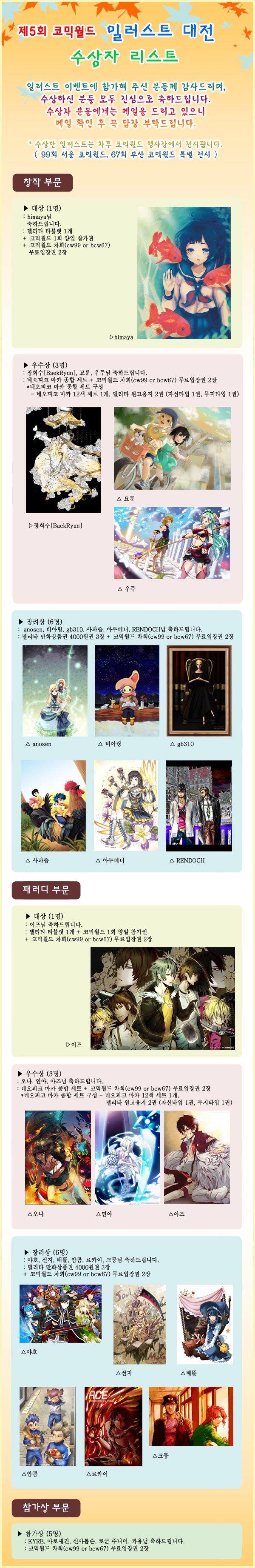 제5회 코믹월드 일러스트 대전 수상자리스트