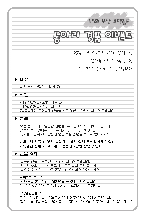 45회 부산 코믹월드 동아리 경품 이벤트(12월)