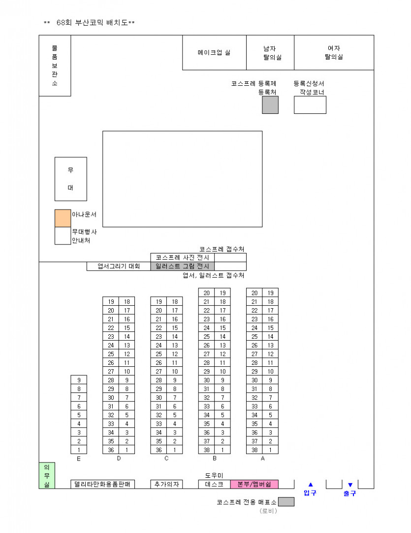 목록 <b>68회 부산 코믹월드 전시장 배치도(5월)</b> 페이지 정보 작성자 코믹월드 댓글 0건 조회 2,039회 작성일 11.04.26 본문 ※ 68회 부산 코믹월드 전시장 배치도 아래 그림을 클릭하면 좀 더 정확하게 전시장 배치도를 볼 수 있습니다. 행사정보 코믹월드 문구전