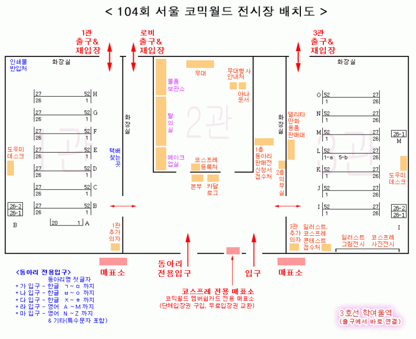 104회 서울 코믹월드 참가리스트 & 전시장배치도 입니다.