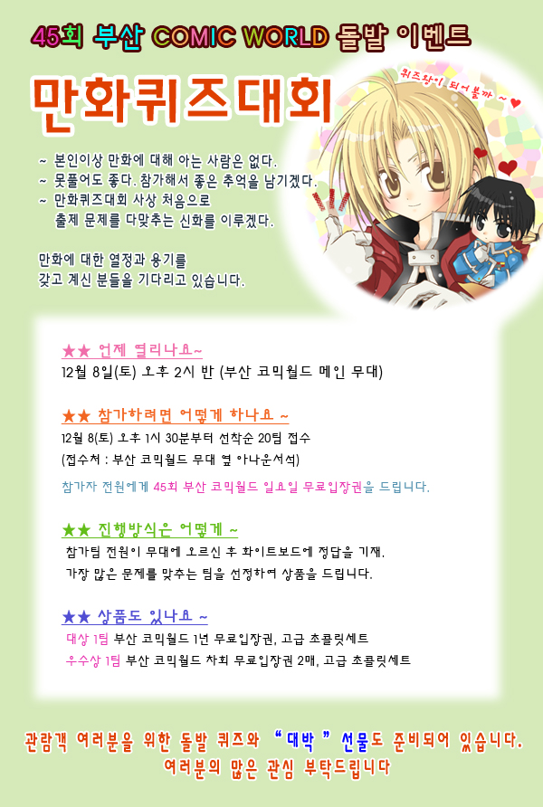 45회 부산 코믹월드 만화퀴즈대회(12/8 토 2시반)