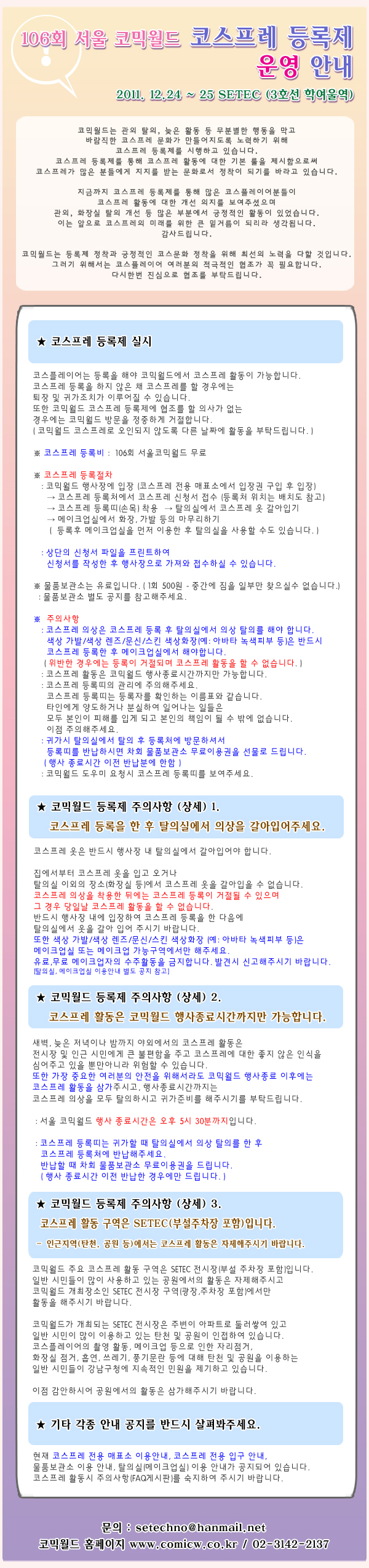 106회 서울 코믹월드 [코스프레 등록제 운영 안내] 신청서 첨부