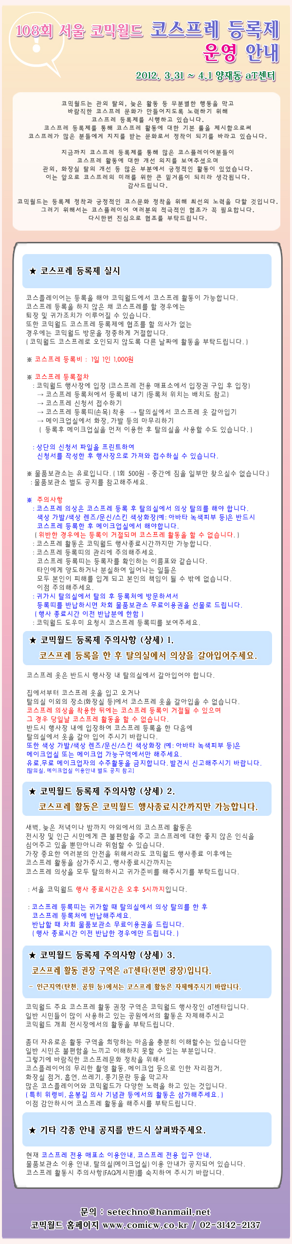 108회 서울 코믹월드 [코스프레 등록제 운영 안내] 신청서 첨부