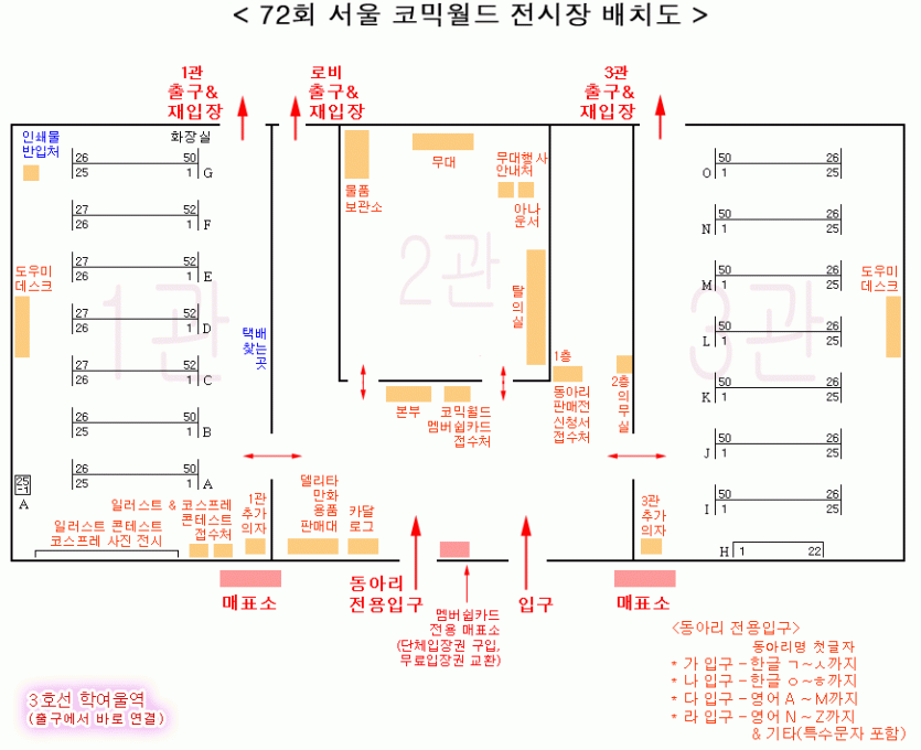 72회 서울 코믹월드 참가리스트 & 전시장배치도 입니다.
