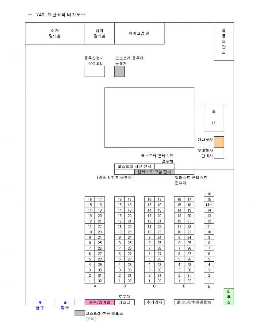 목록 74회 부산 코믹월드 전시장 배치도 페이지 정보 작성자 코믹월드 댓글 0건 조회 1,848회 작성일 12.04.23 본문 ※ 74회 부산 코믹월드 전시장 배치도 아래 그림을 클릭하면 좀 더 정확하게 전시장 배치도를 볼 수 있습니다. 행사정보 코믹월드 문구전