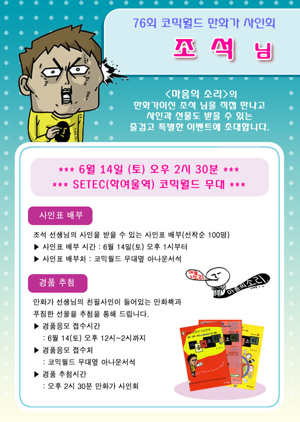 76회 서울 코믹월드 만화가 사인회 - 조석 선생님 (상세일정)