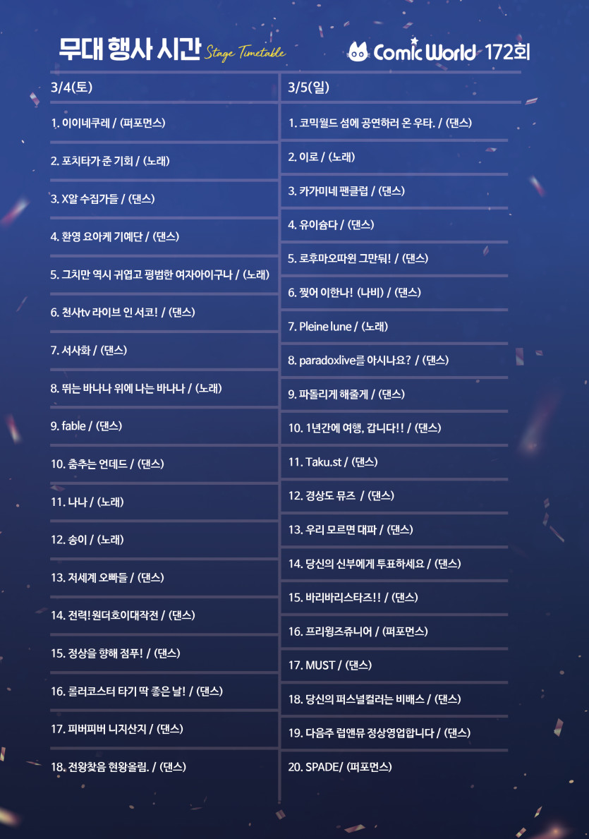 서울 172회 서울 코믹월드 (3월) 코스튬플레이 무대이벤트 참가자 리스트