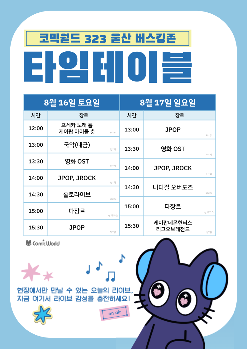 부산 코믹월드 323 울산 (8월) 코스튬플레이 무대 이벤트 참가자 리스트