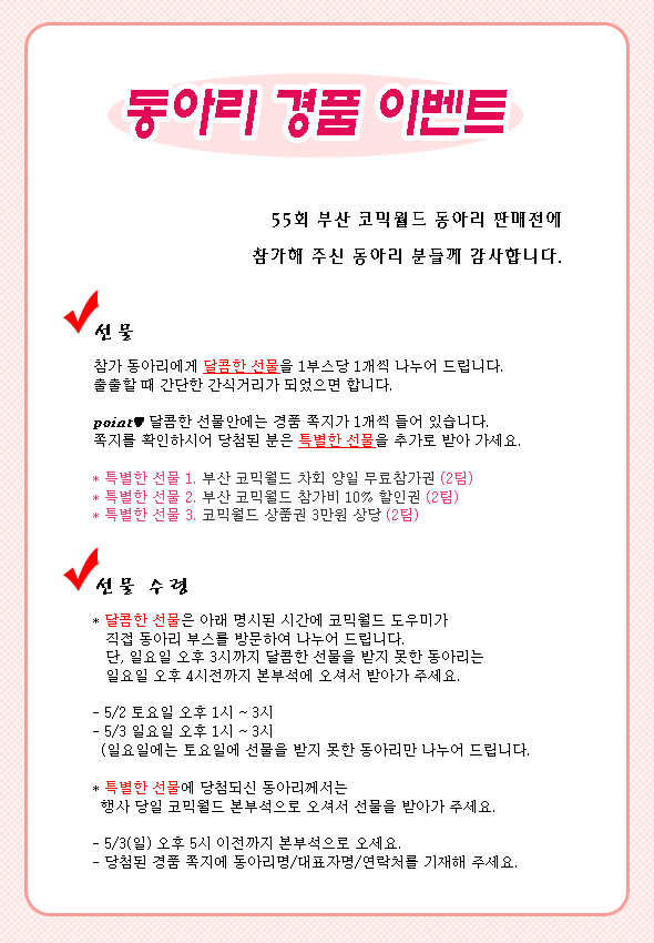 55회 부산 코믹월드 동아리 경품 이벤트(5월)