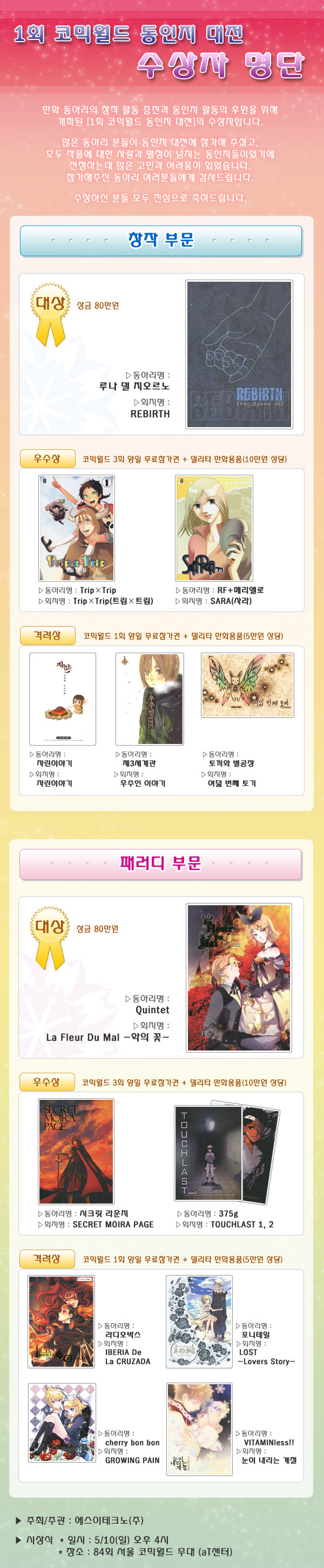 1회 코믹월드 동인지 대전 수상자