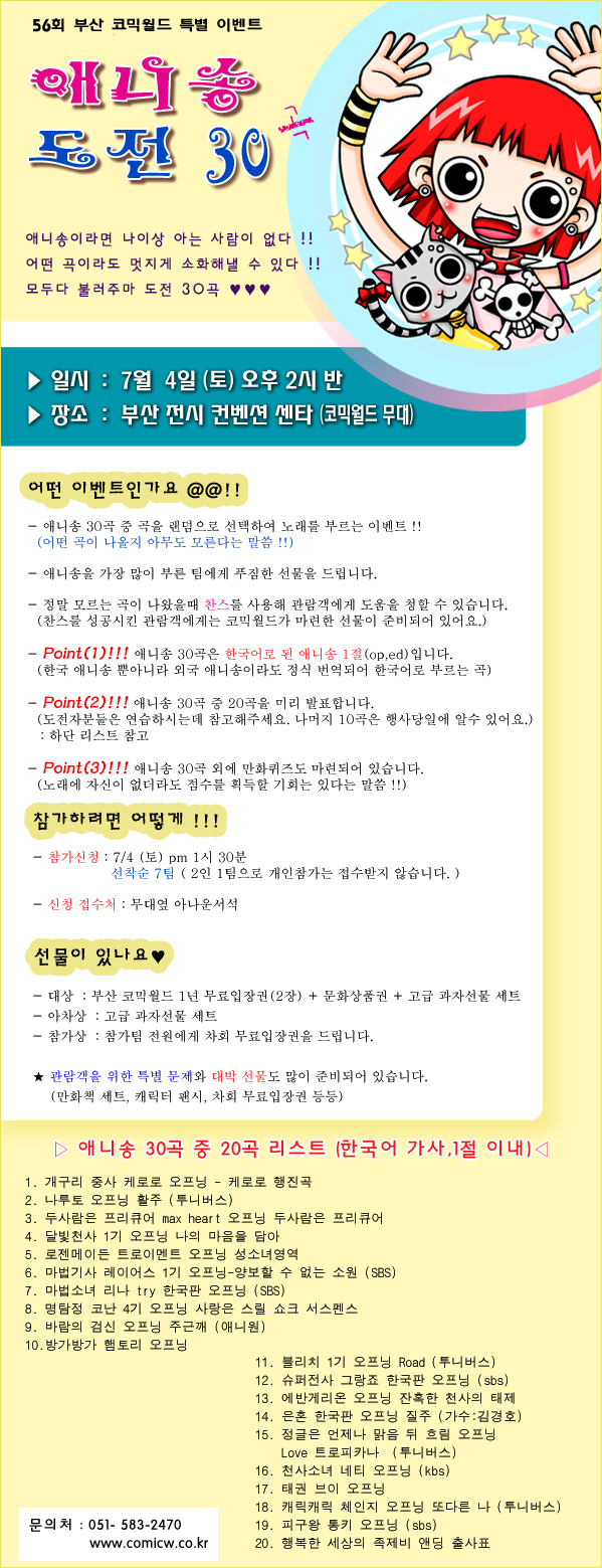 목록 56회 부산 코믹월드 - 애니송 도전 30곡(7/4토 오후2시반) 페이지 정보 작성자 코믹월드 댓글 0건 조회 2,502회 작성일 09.06.19 본문 56회 부산 코믹월드 - 애니송 도전 30곡(7/4토 오후2시반) 행사정보 코믹월드 문구전