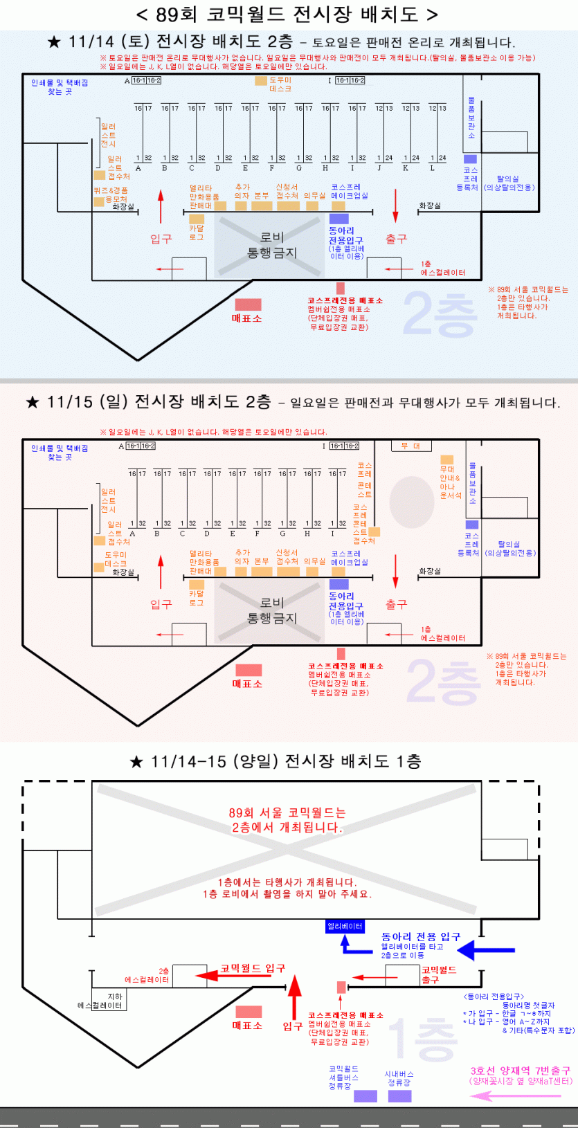 89회 서울 코믹월드 참가리스트&전시장배치도 (11월)