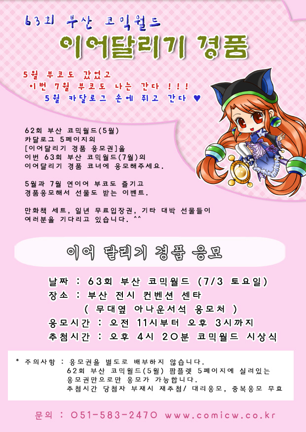 목록 63회 부산 코믹월드-이어달리기 경품 이벤트 페이지 정보 작성자 코믹월드 댓글 0건 조회 2,377회 작성일 10.06.24 본문 63회 부산 코믹월드-이어달리기 경품 이벤트 행사정보 코믹월드 문구전